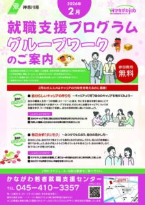 2月のグループワークのご案内 2026年01月17日 掲載 かながわ若者就職支援センターで開催する就職支援プログラム(グループワーク)のご案内を掲載しました。 2月のグループワーク 下記をクリックしてご覧ください(PDF形式) 現在予約可能なグループワーク Webからの予約はこちらをクリック